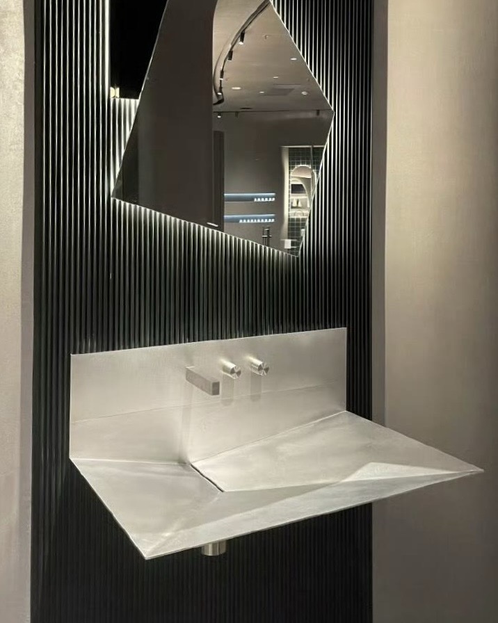 This sink features a unique origami-inspired shape, blending functionality with artistic flair. Its durable 5mm thick construction ensures longevity, while the polished finish resists stains, making it perfect for high-end spaces.