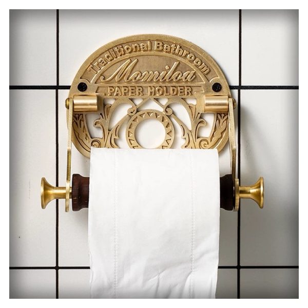 The Mömilöa Toilet Roll Holder exudes timeless elegance with its luxurious brass finish and intricate detailing. Perfect for traditional bathrooms, it adds a touch of vintage charm effortlessly.